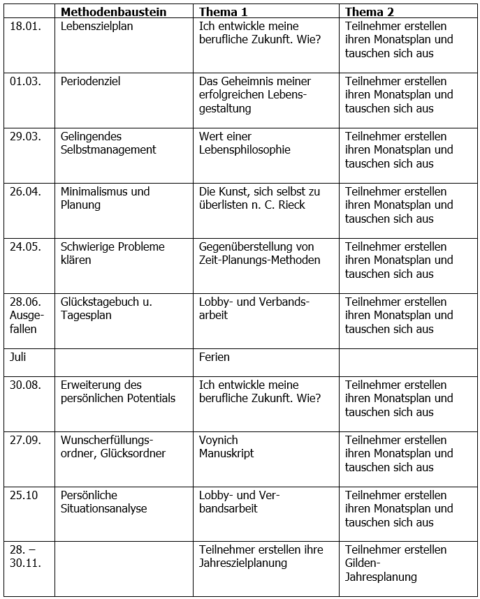 Gildenfreundinnen und Gildenfreunde gestalten die Einstimmung und das Schlusswort. Zudem wird jeweils ein Buch vorgestellt, welches der/dem Vortragenden großen Nutzen gebracht hat.